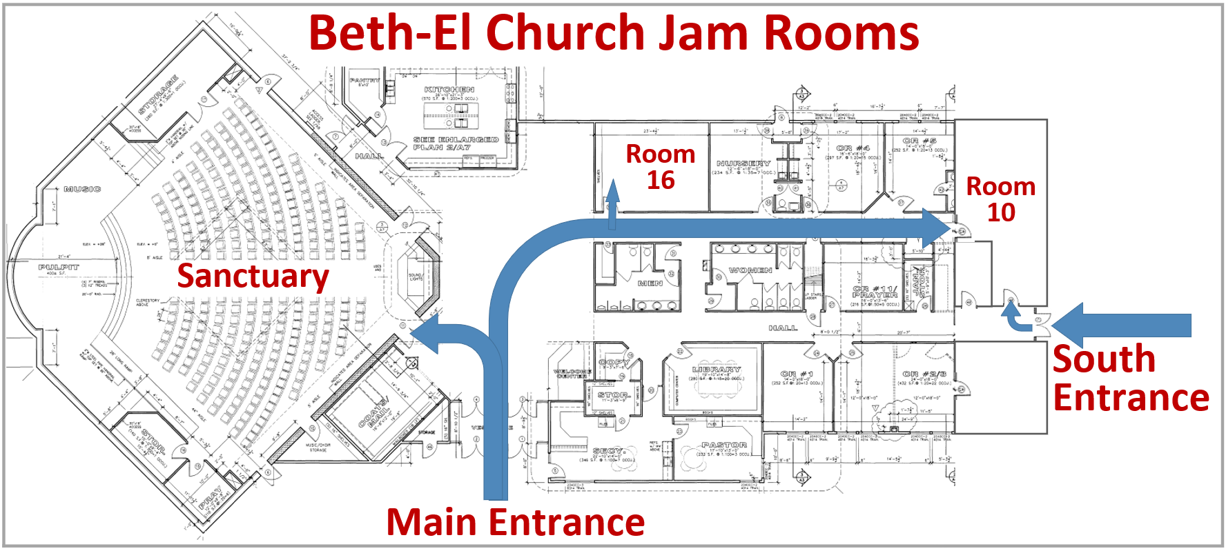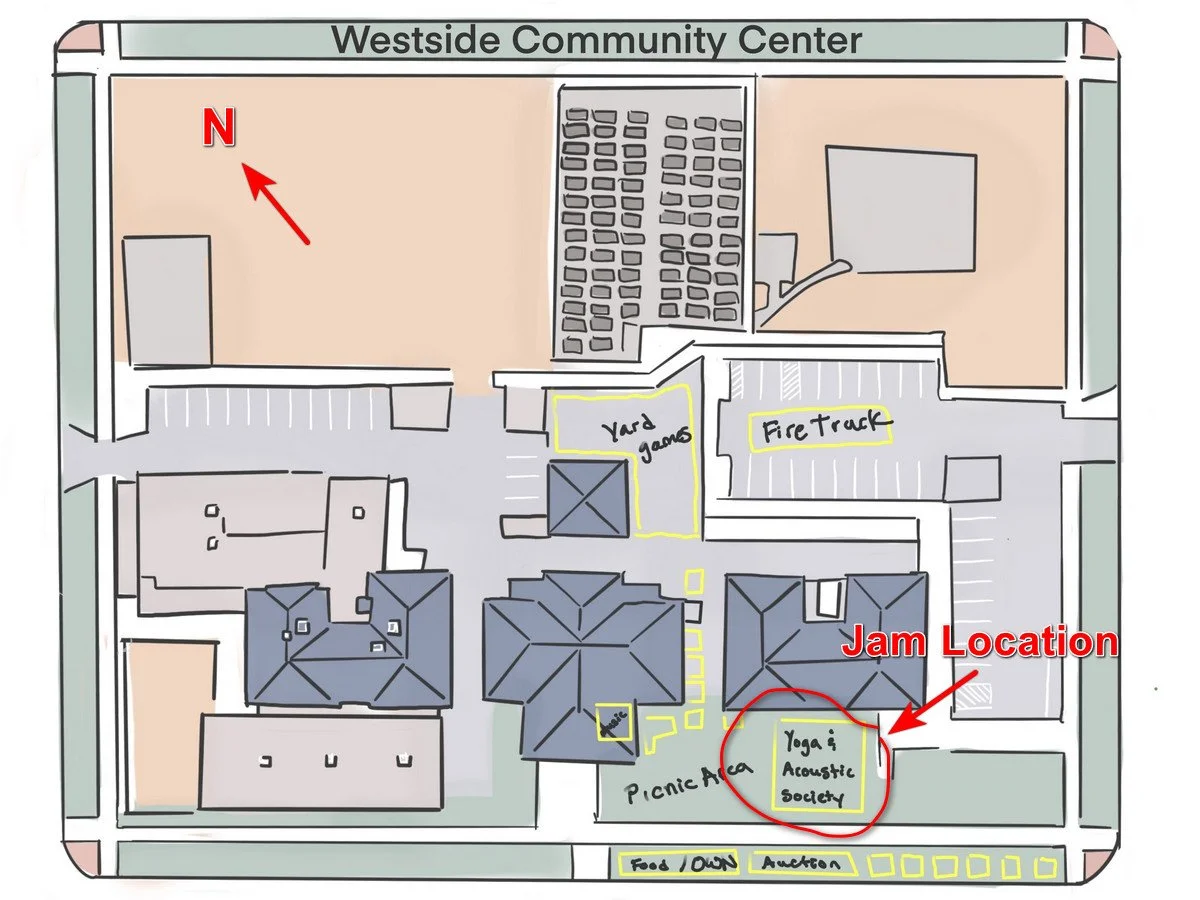 We hold our jams and open mics at the locations below. Check our jam overview page and our jam email reminders for all the latest jam info you’ll need before attending. To help cover the cost of room rental, our donation policy is in effect.